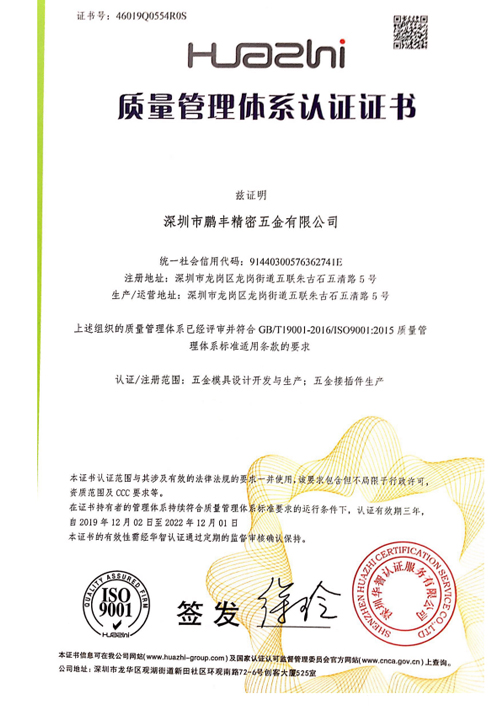 鵬豐精密圍繞著五金加工生產方向,以多品類產品(五金沖壓,拉伸,鈑金,壓鑄,CNC)滿足顧客需求,已形成了一站式服務體系。公司自成立以來,堅持貫徹“系統解決問題,防范優于補救”的品質方針和“質量取勝,優質服務”的經營理念并持續改進和不斷創新,是五金加工生產的理想選擇,我們誠摯邀請海內外合作伙伴前來洽談。